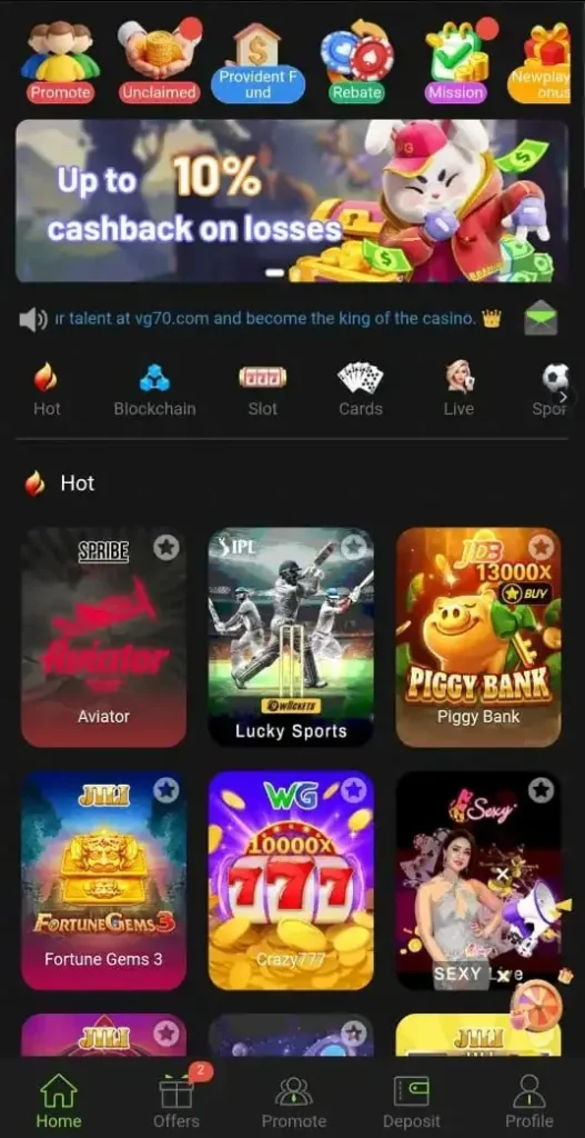 VG70 Game is now a very top trending casino style gaming app in Pakistan. This app is not only a source of fun but also give players a way to earn real money while playing games on mobile.